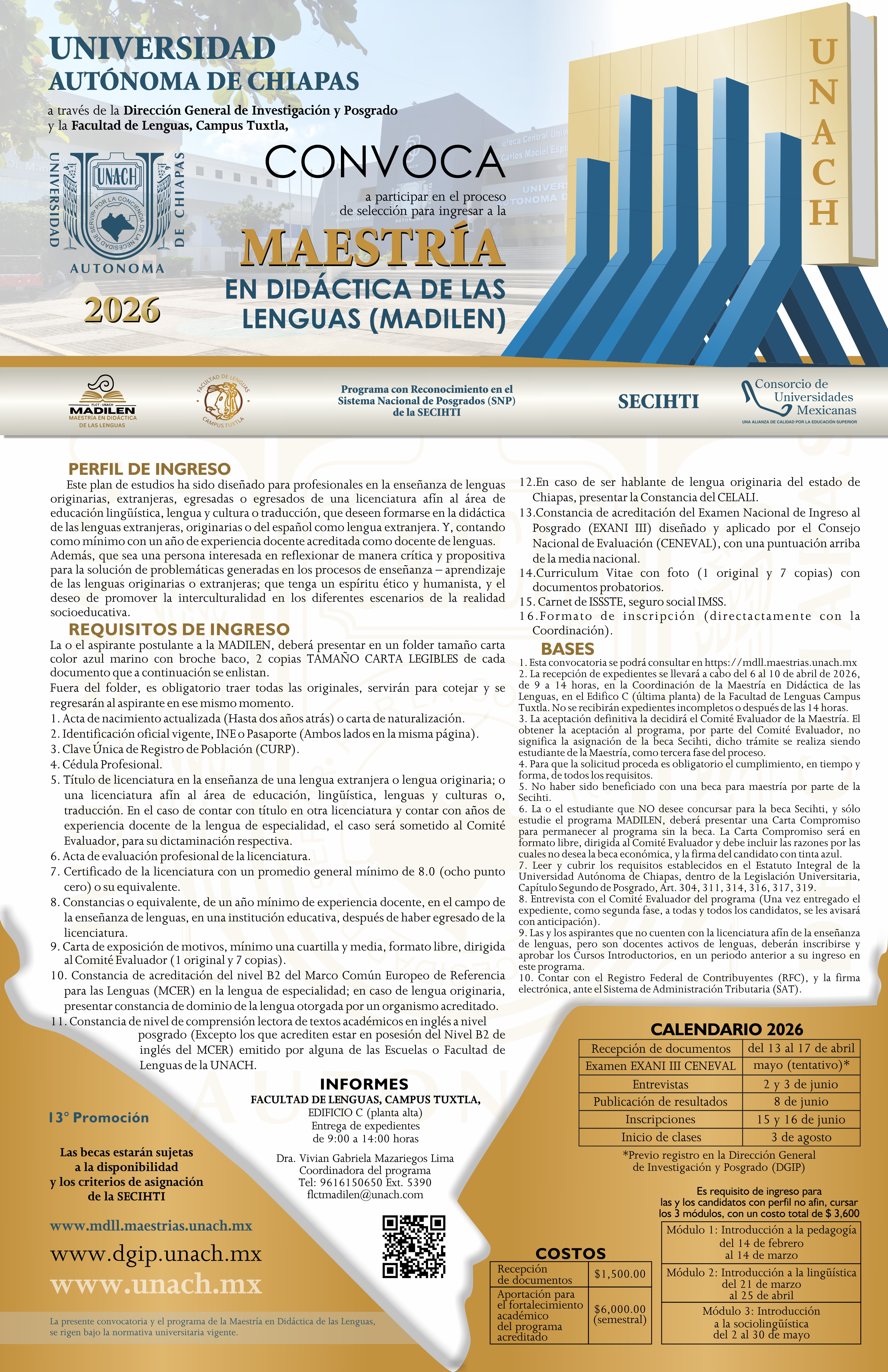 MAESTRÍA EN DIDÁCTICA DE LAS LENGUAS: RECEPCIÓN DE DOCUMENTOS DEL 13 AL 17 DE ABRIL DE 2026