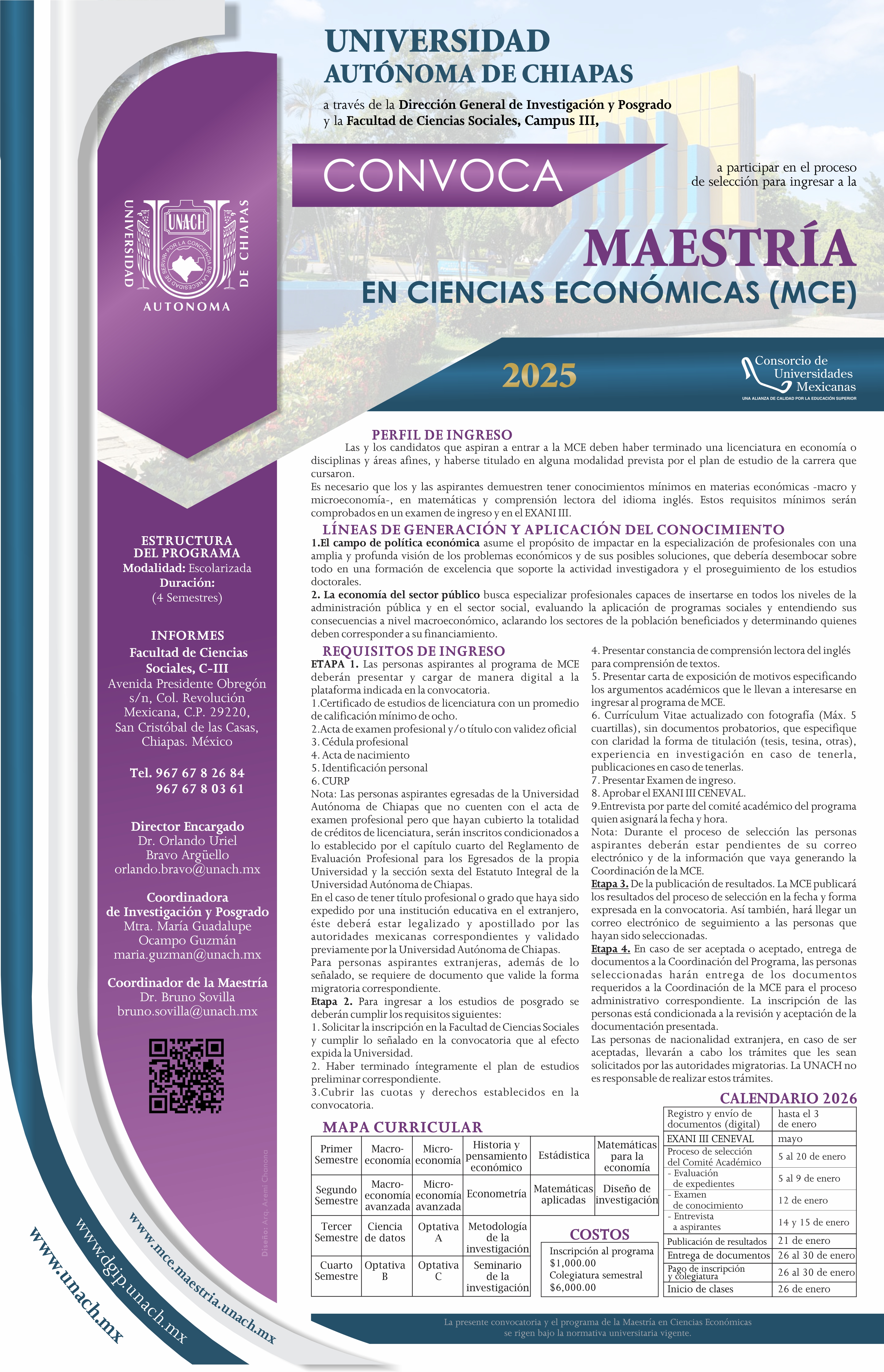 MAESTRÍA EN CIENCIAS ECONÓMICAS. REGISTRO Y ENVÍO DE DOCUMENTOS (DIGITAL), HASTA EL 3 DE ENERO DE 2026