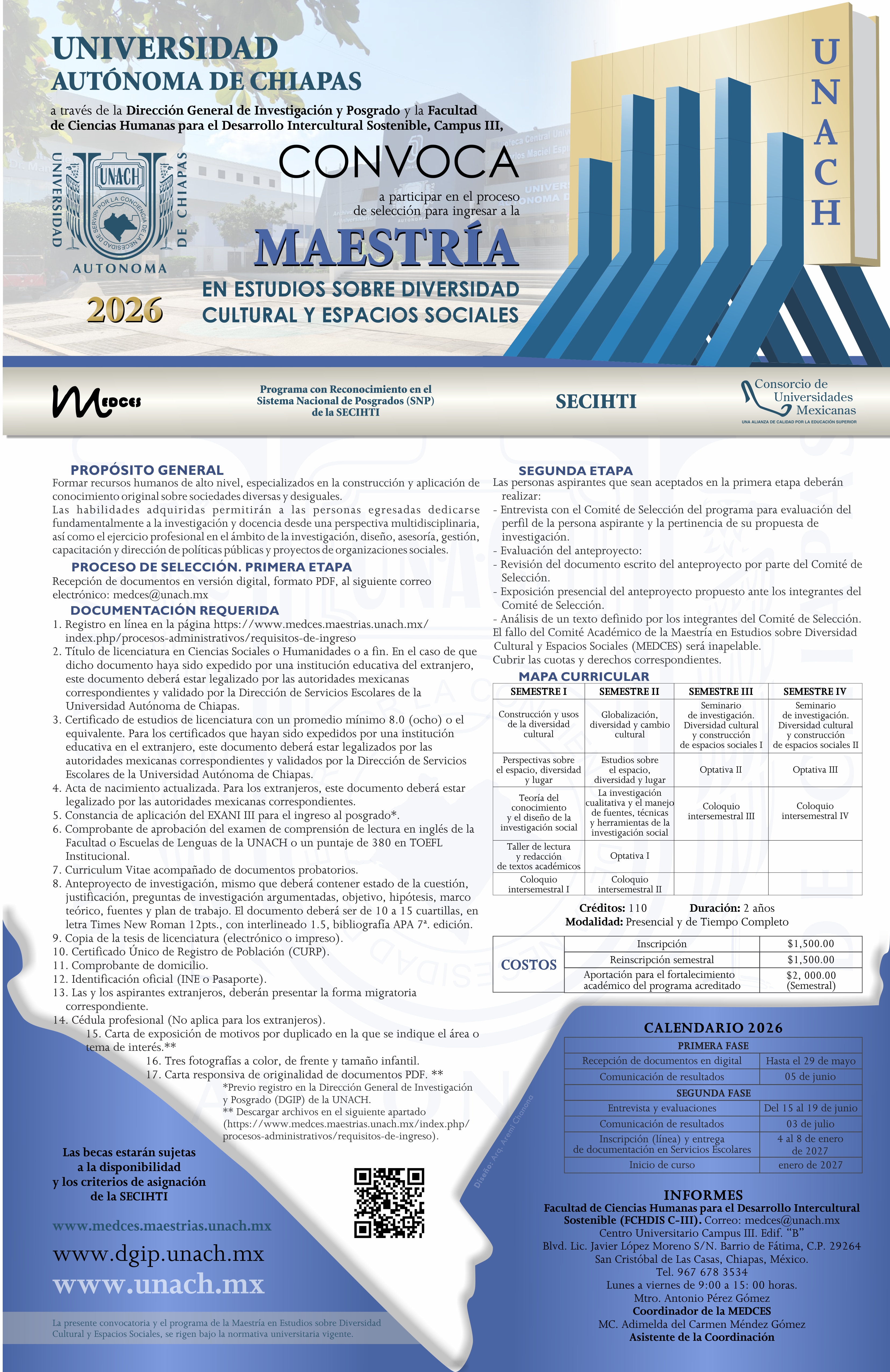 CONVOCATORIA, MAESTRÍA EN ESTUDIOS SOBRE DIVERSIDAD CULTURAL Y ESPACIOS SOCIALES. RECEPCIÓN DE DOCUMENTOS EN LÍNEA, HASTA EL 29 DE MAYO DE 2026