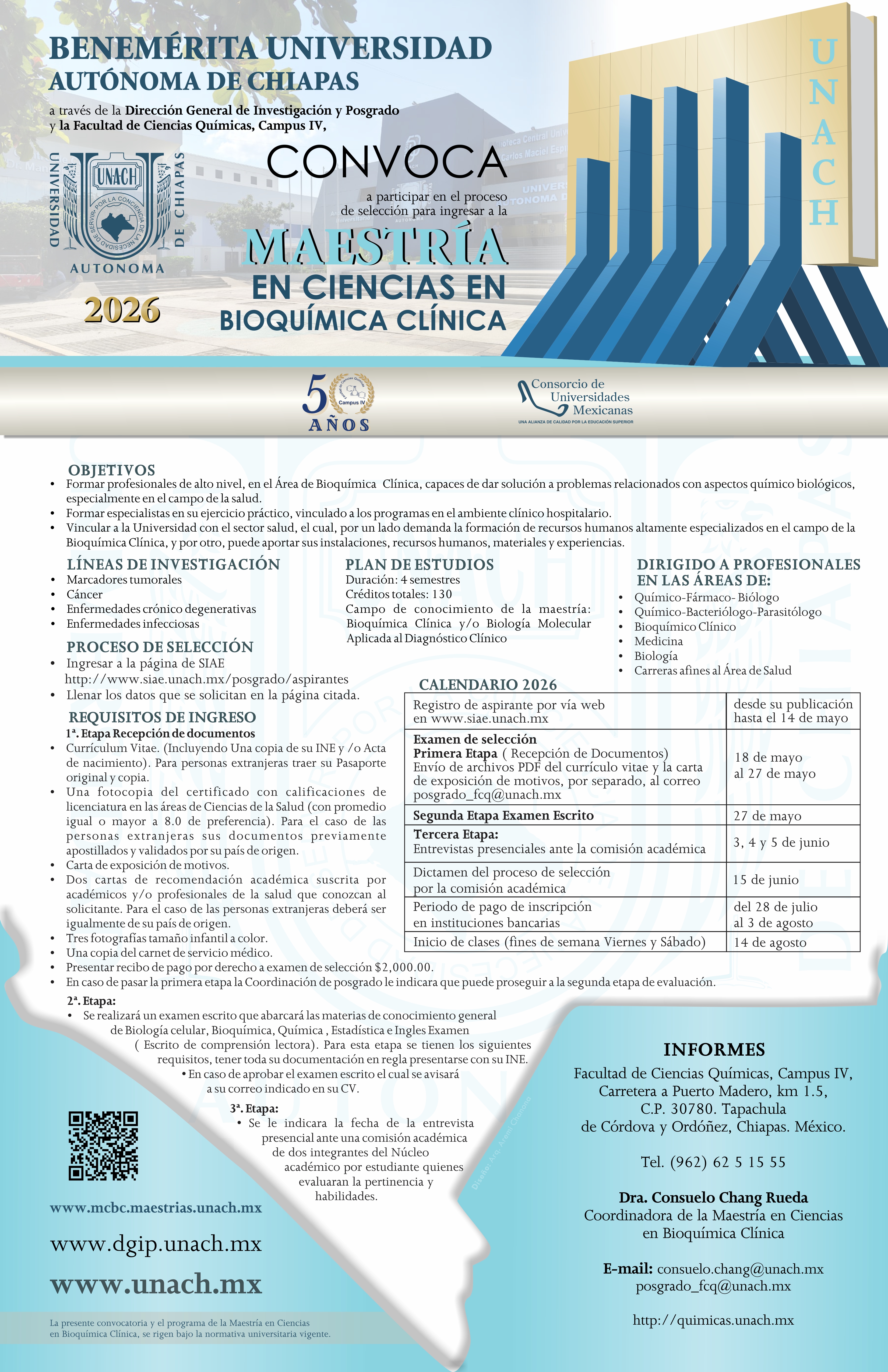 CONVOCATORIA. MAESTRÍA EN CIENCIAS EN BIOQUÍMICA CLÍNICA. REGISTRO DE ASPIRANTES, HASTA EL 14 DE MAYO DE 2026